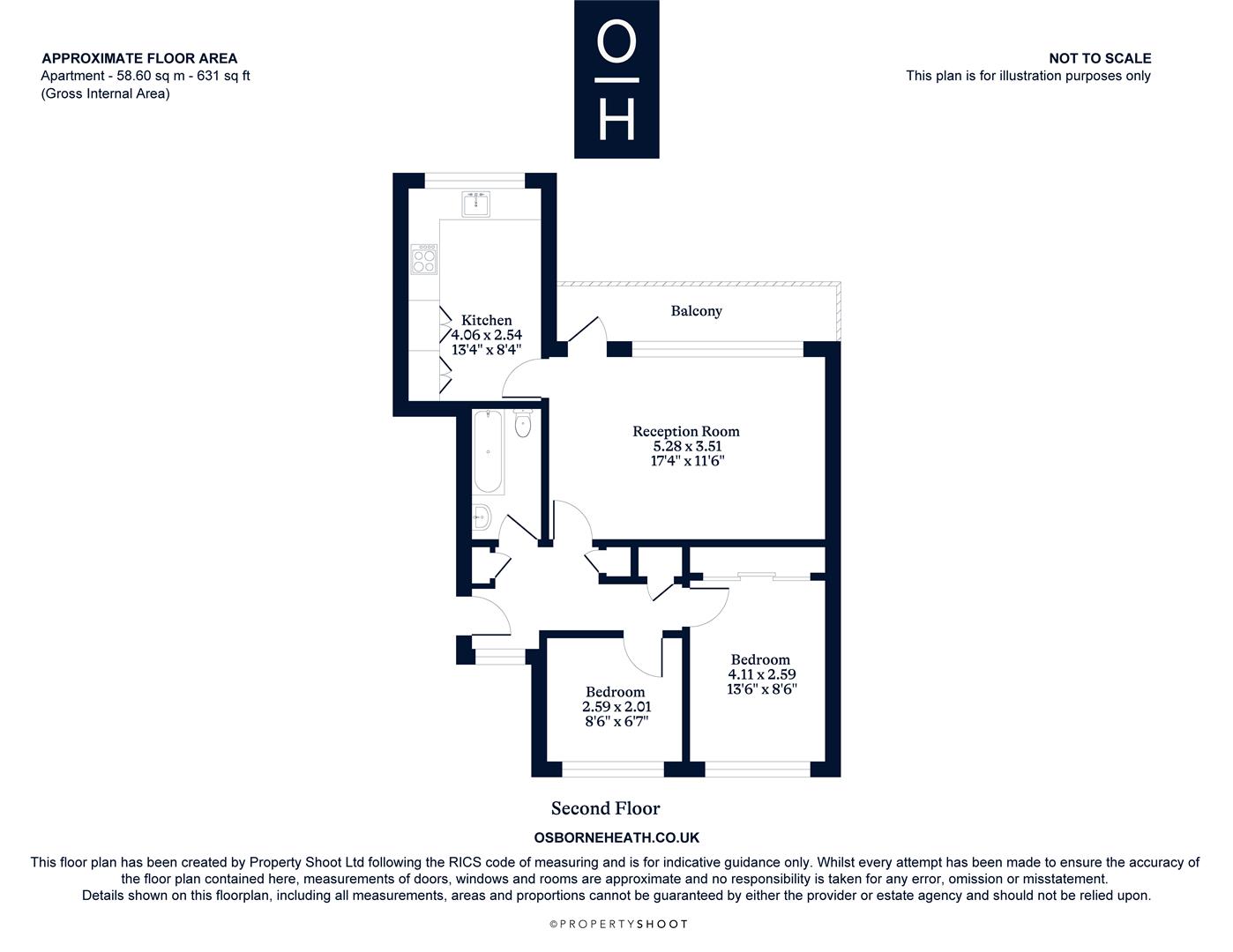 There is a modern kitchen with space for a dining table, large living room with doors out to the south facing balcony, a bathroom and two good size bedrooms. There are views of Windsor castle over rooftops from the main bedroom.