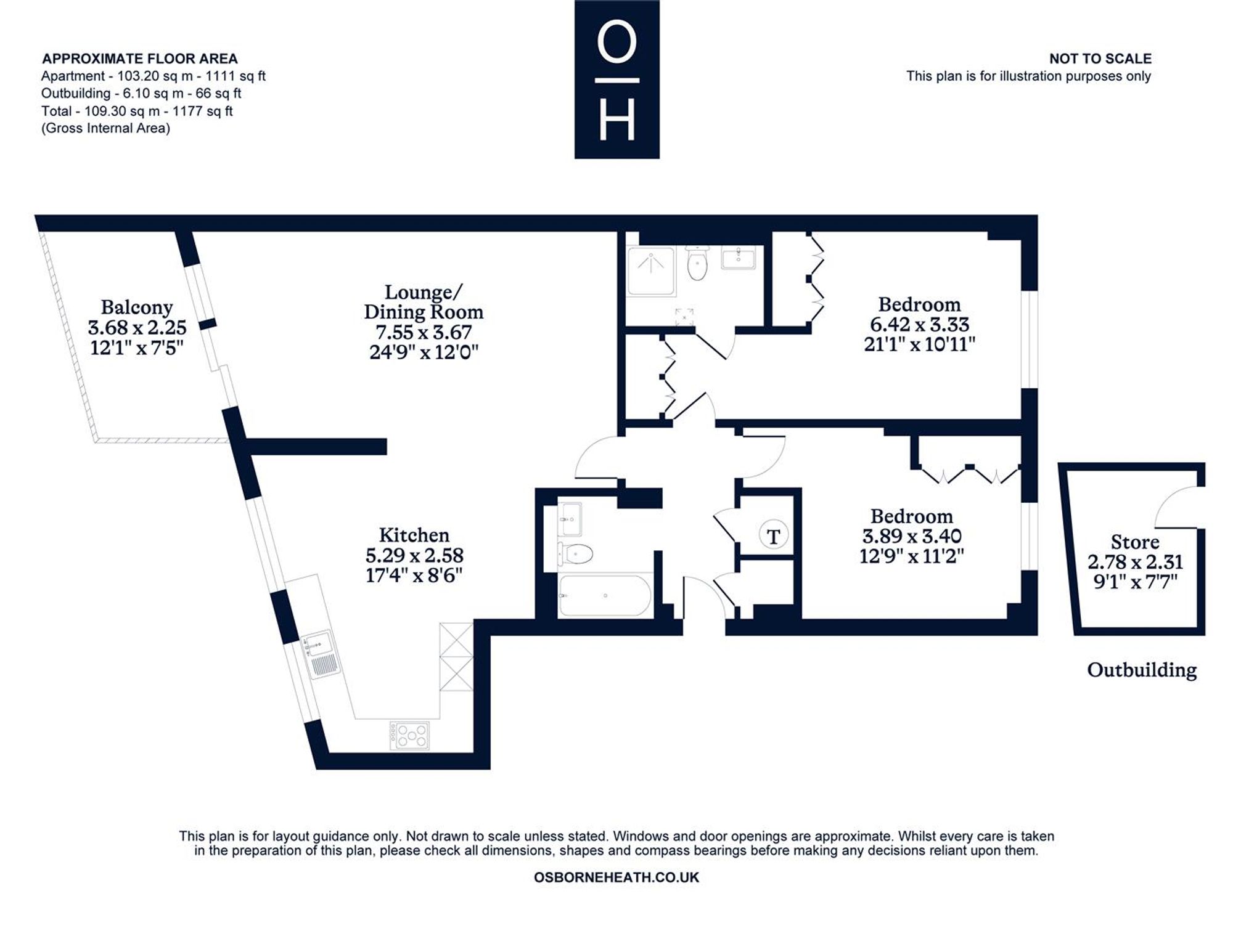 This modern first floor apartment has two double bedrooms, two bathrooms and an open-plan kitchen, living and dining area with access to the balcony with views overlooking Windsor.