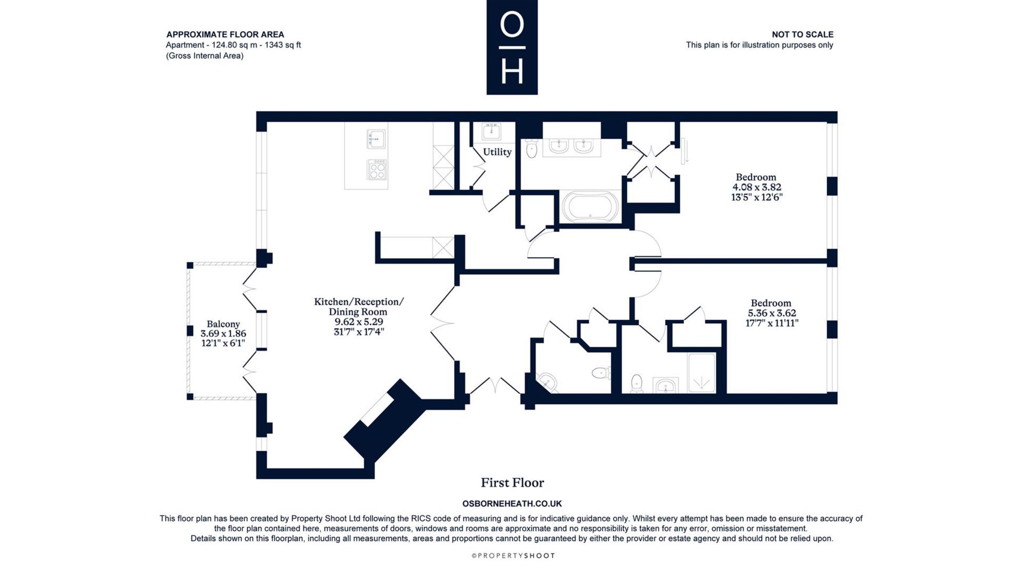 “A two double bedroom, two bathroom first floor apartment with a south facing balcony, underground parking and concierge services.”