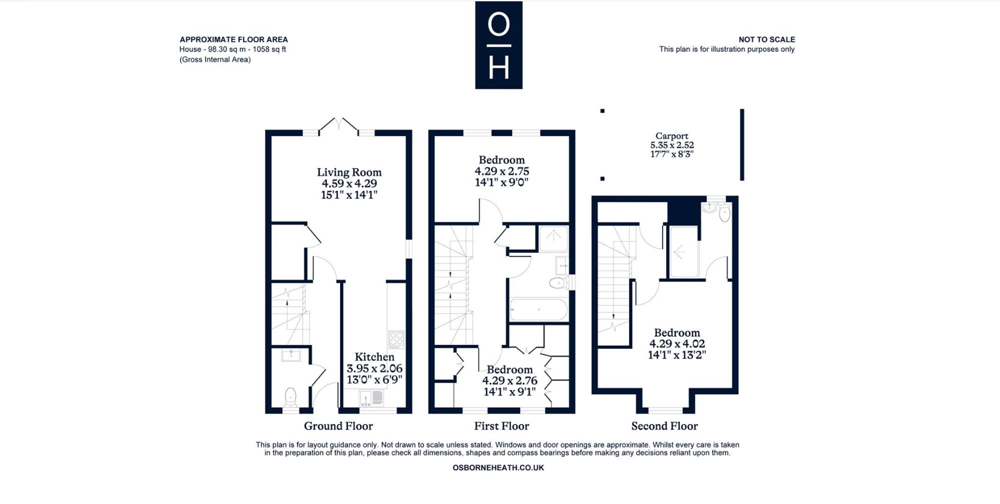 The first floor has two bedrooms and a large bathroom, and the top floor has an en suite bedroom.