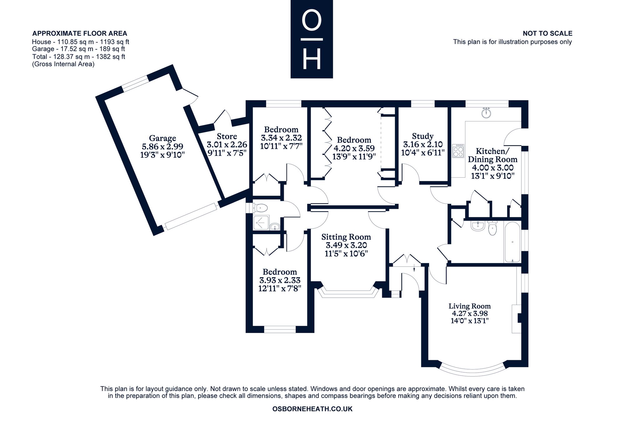 This flat level bungalow has a living room, study, kitchen, up to four bedrooms, bathroom and a shower room.