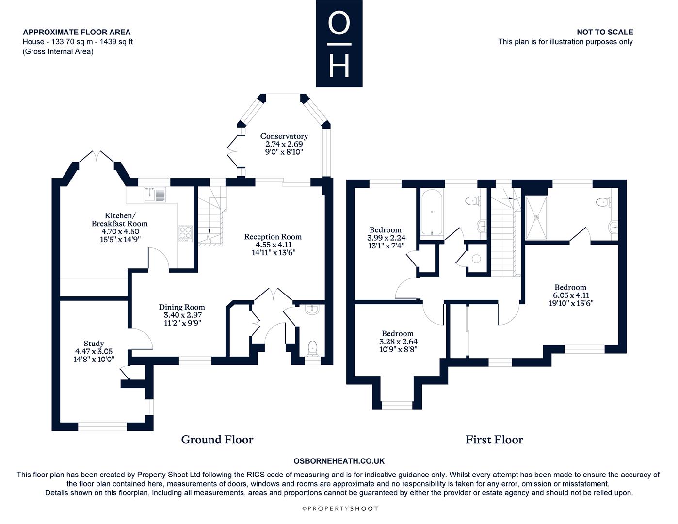 Downstairs there is a large double reception room with conservatory leading out to the garden, kitchen with space for a dining table, study and downstairs WC.