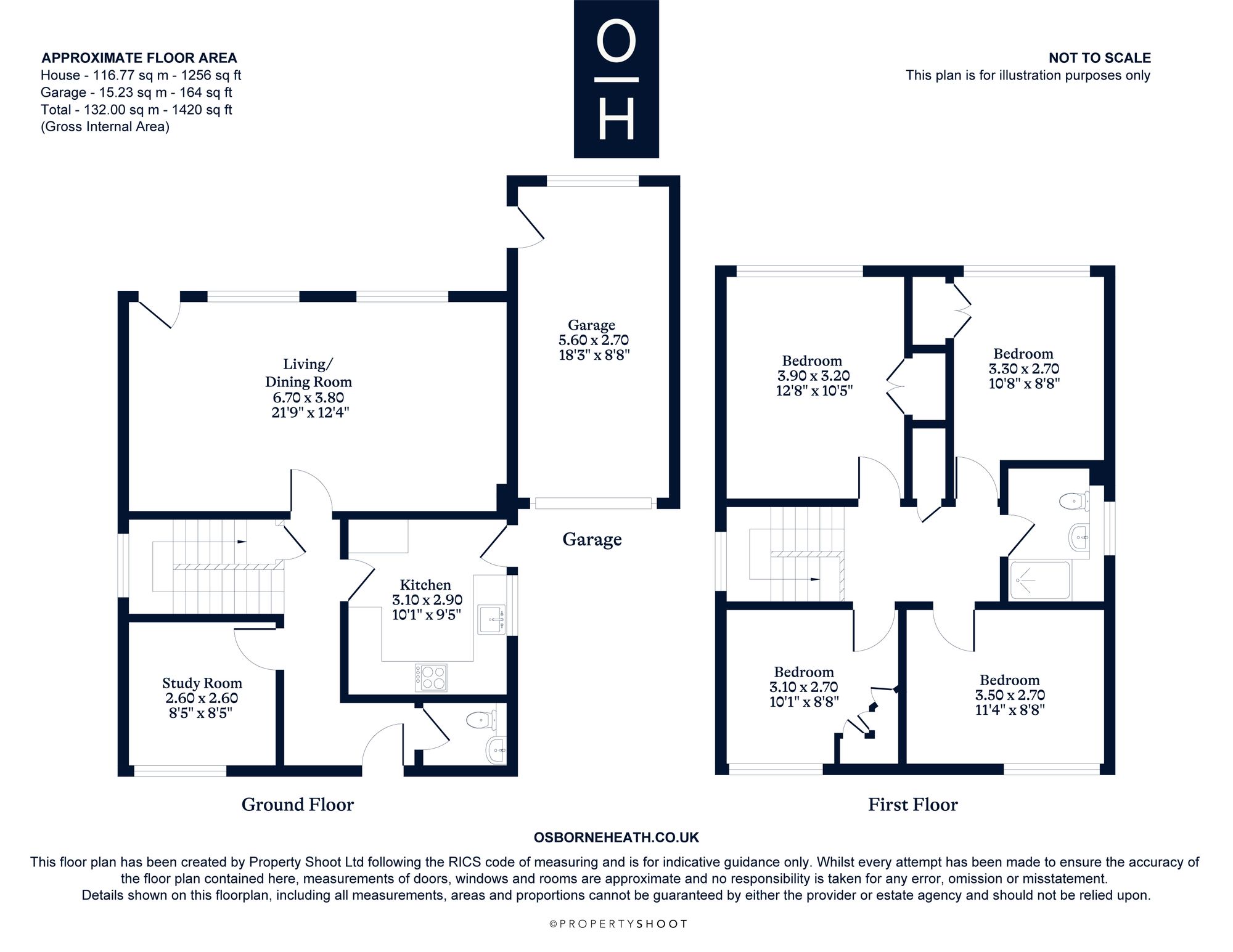 Downstairs there is a large living and dining room leading out to the garden, separate kitchen, study, downstairs WC and a garage.