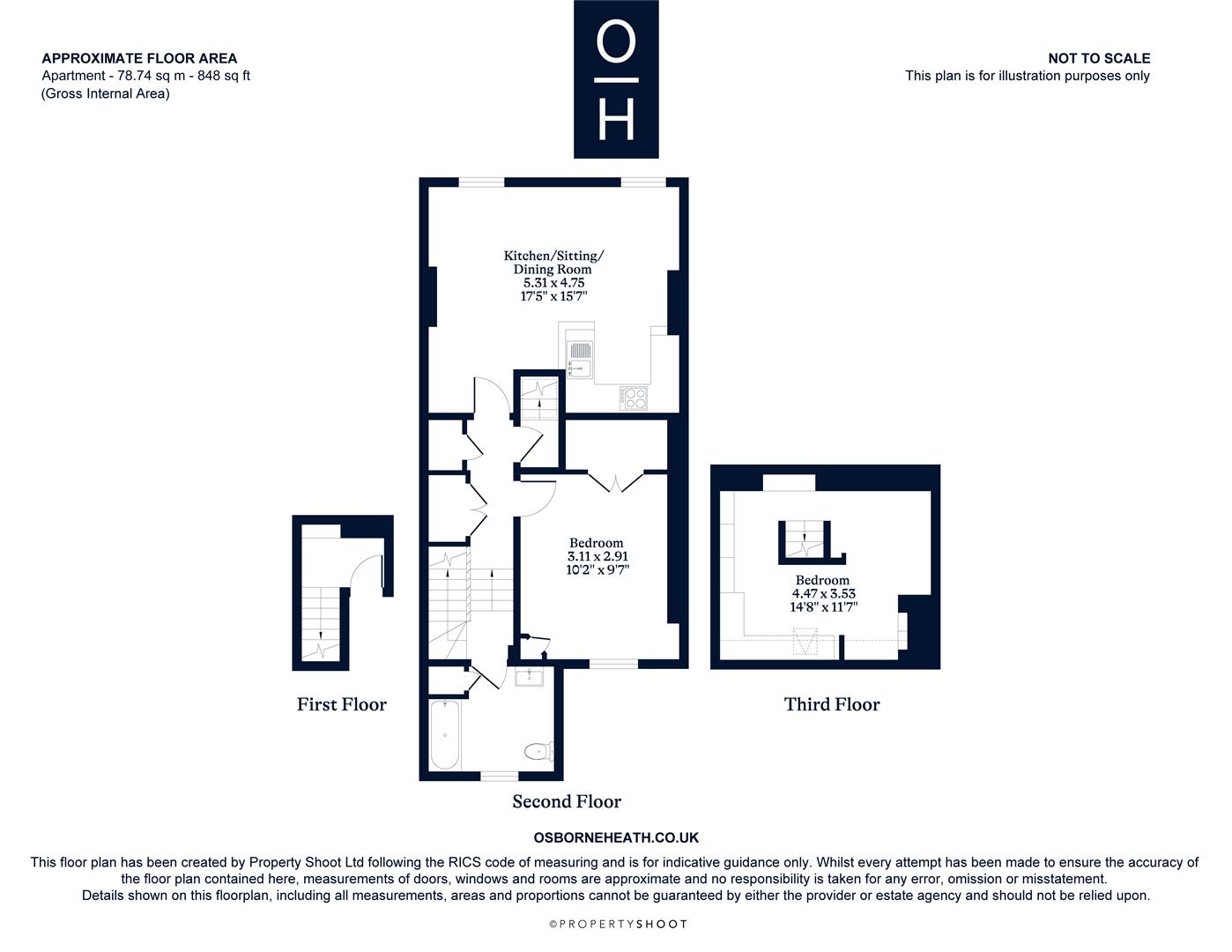 This top floor, grade II listed, split level apartment benefits from having a double bedroom, bathroom, open-plan kitchen, dining and living space. plus a loft room that could be used as a second bedroom.