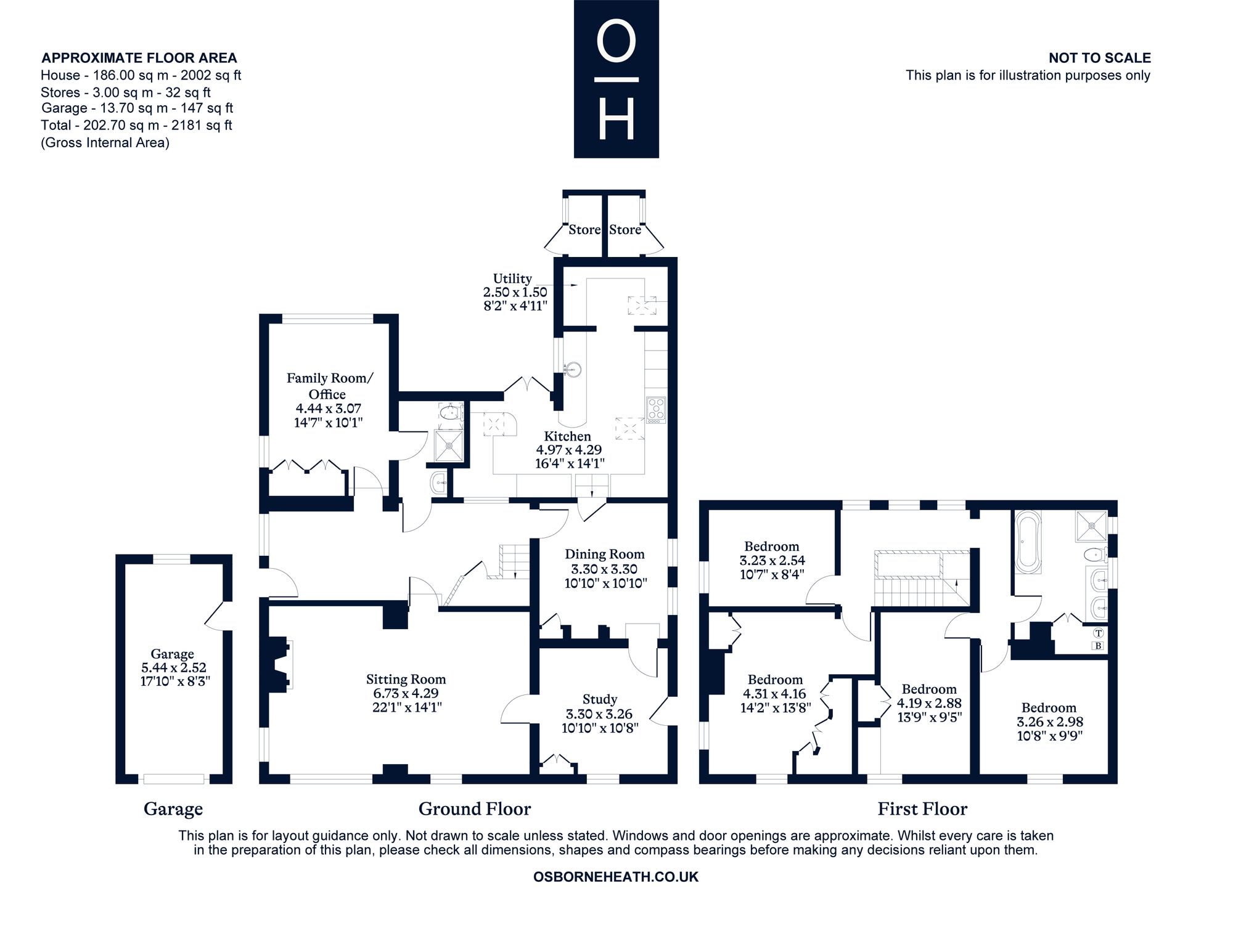 The first floor has the principal bedroom with built-in wardrobes, three further bedrooms and a family bathroom.