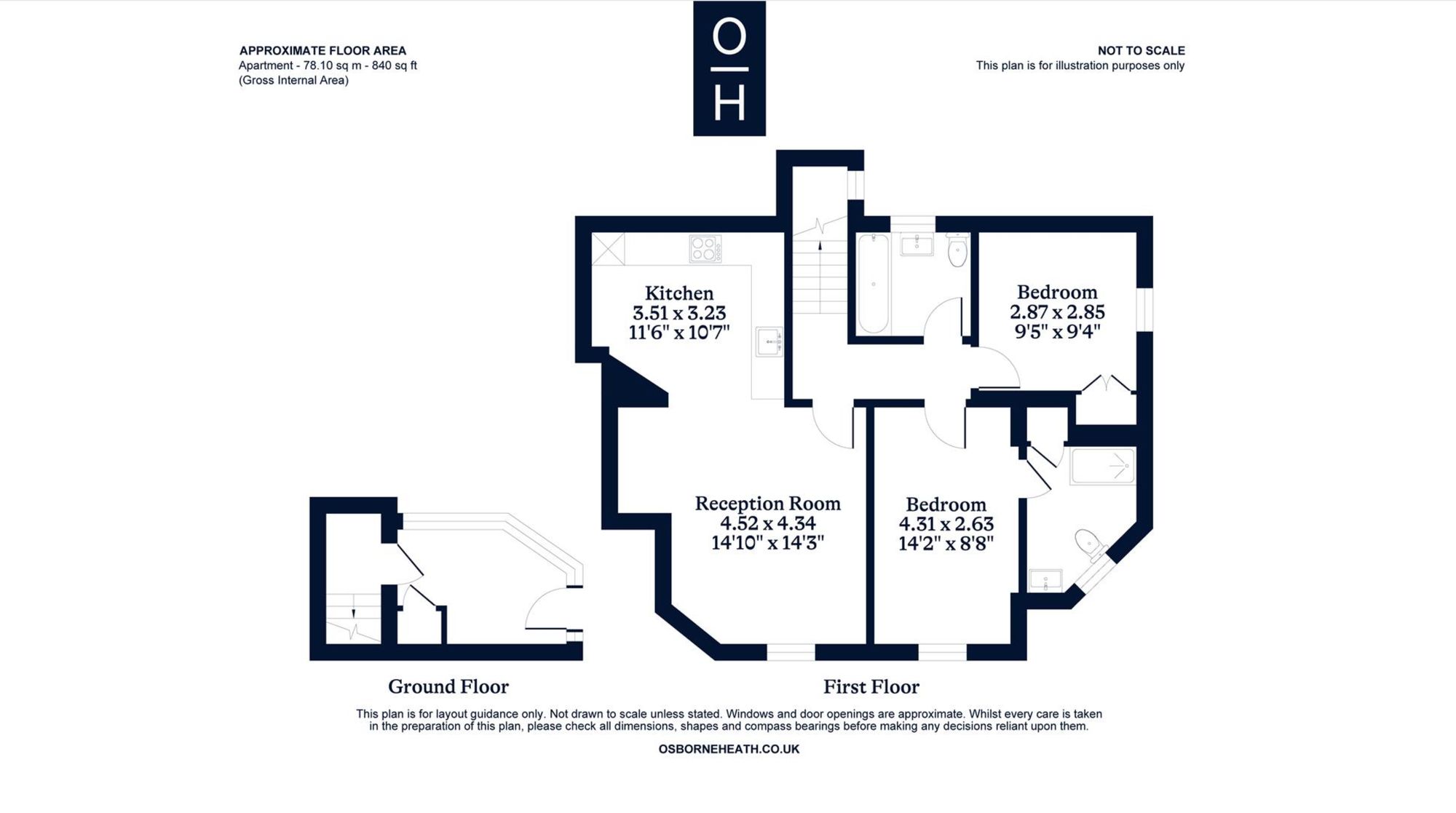 This first floor maisonette has its own porch and front door, open-plan kitchen with living and dining areas, principal bedroom with an en-suite, further double bedroom and a bathroom.
