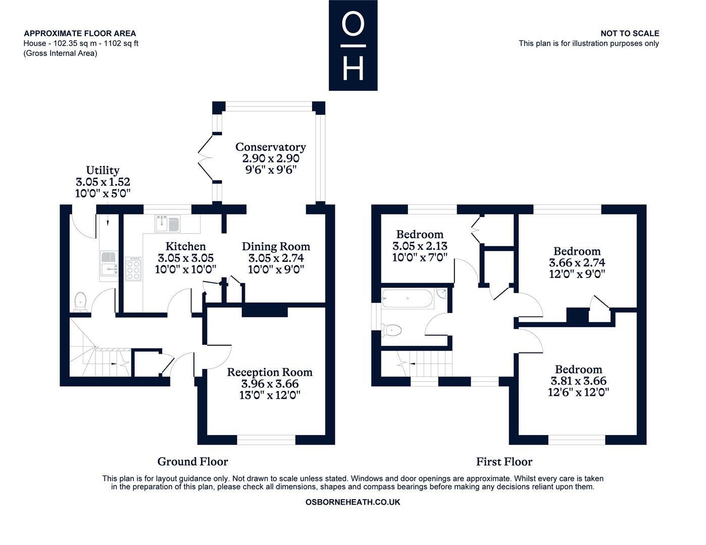 On the ground floor there is a living room, kitchen with dining area, utility room with downstairs WC, and a conservatory with doors leading out to the garden.