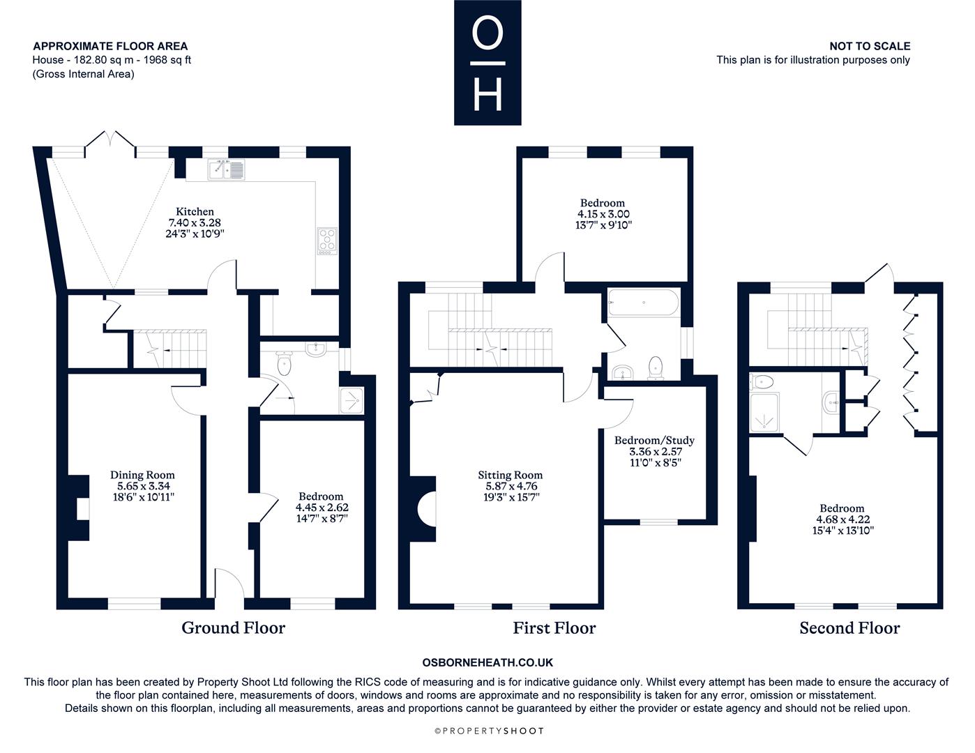 The first floor has a formal living room overlooking The Long Walk, double bedroom, bathroom and an office which could be used as the fourth bedroom.