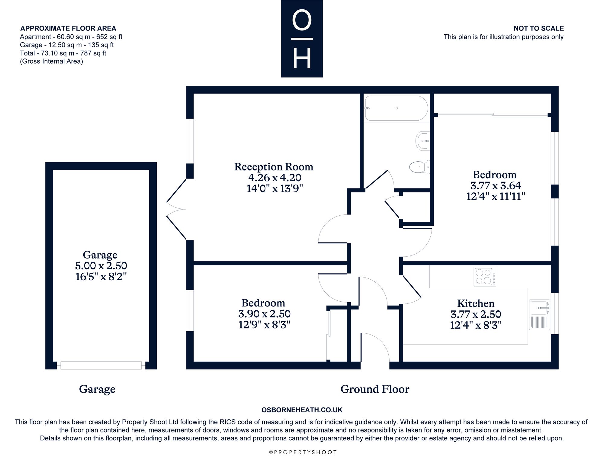 This apartment has a kitchen, bathroom, two double bedrooms and a living room with patio doors leading out to the communal gardens.