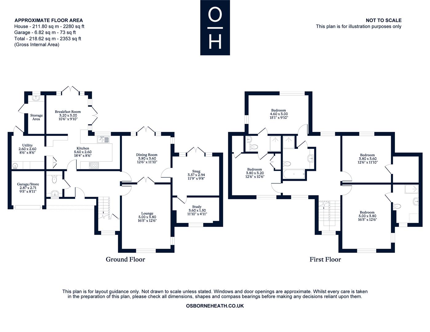 The first floor has the principal bedroom with an en suite, guest bedroom with en suite, two further double bedrooms and a family bathroom.