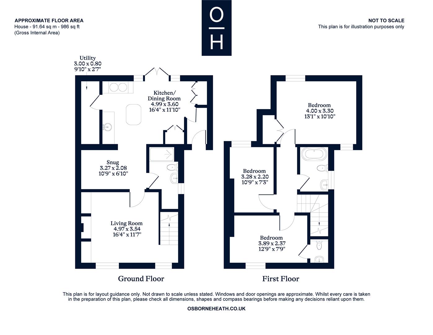 The first floor has three bedrooms, a family bathroom and a WC off one of the bedrooms.