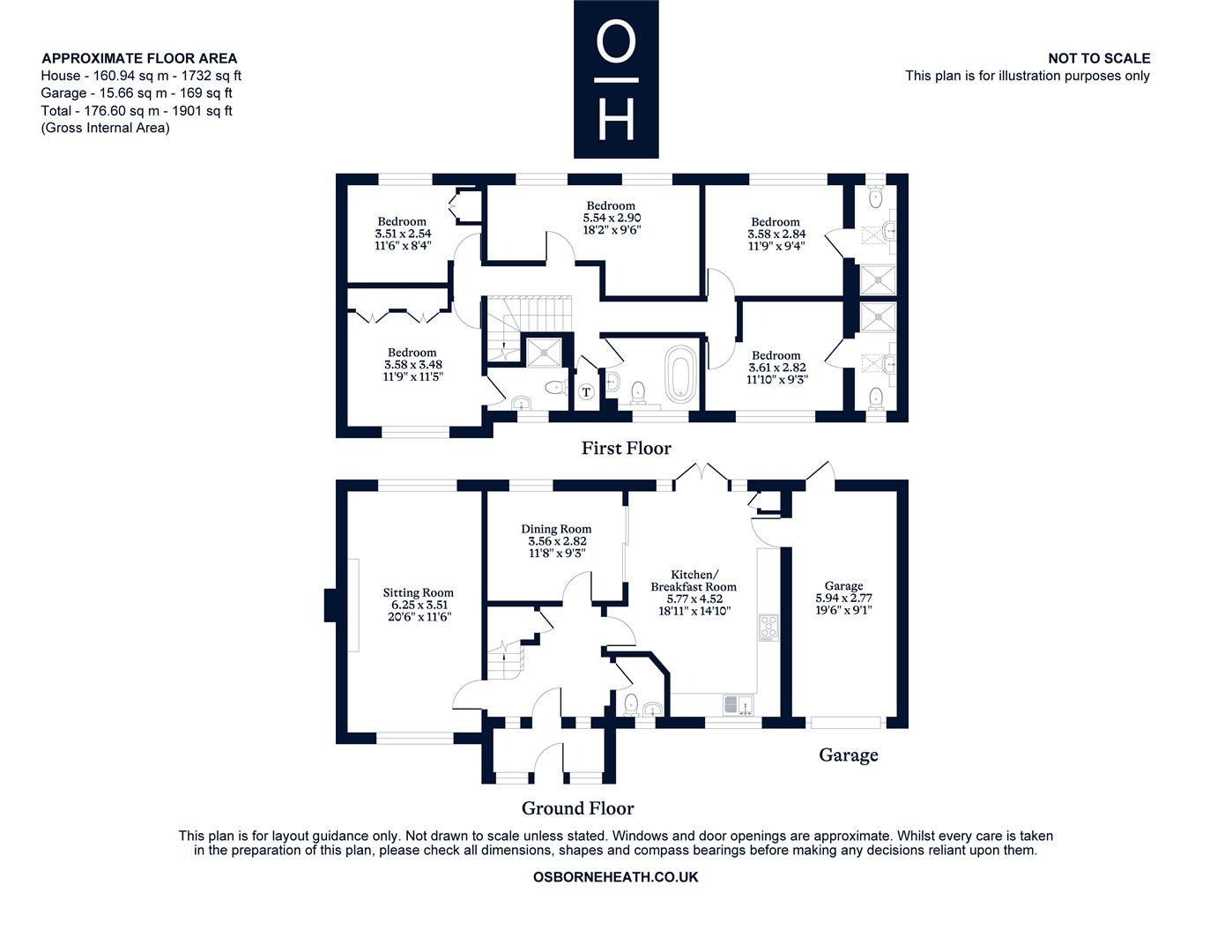 On the ground floor there is a double-aspect living room, dining room, kitchen with dining space, downstairs WC and internal access to the garage.