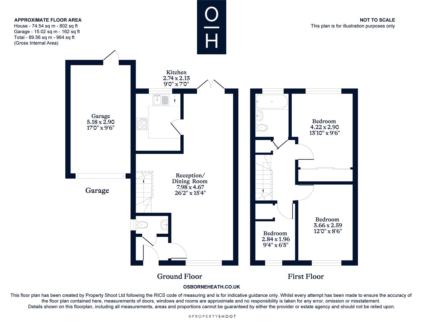The ground floor has a living and dining room with patio doors leading out to the garden, separate kitchen and a downstairs WC.