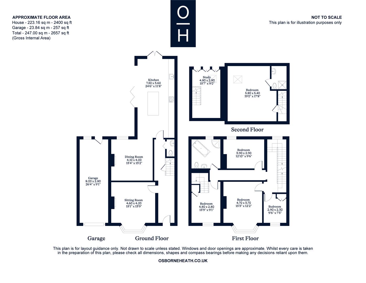 The first floor has three double bedrooms and a modern family bathroom. The fourth bedroom includes stairs leading to an additional room, ideal as a study or dressing area.