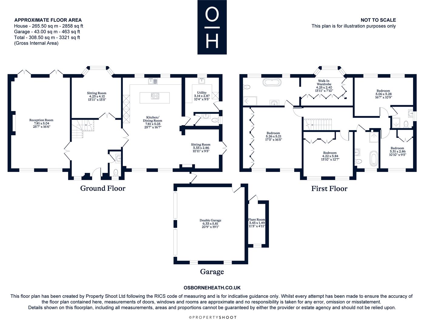 On the first floor is the principal bedroom which has a dressing room and a large en suite, an en suite guest bedroom, two further bedrooms and a family bathroom.