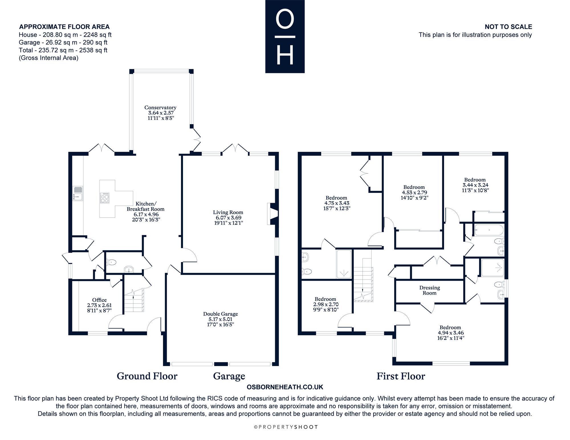 On the first floor is the principal bedroom with a dressing room and en suite, an en suite guest bedroom, three further bedrooms and a family bathroom.