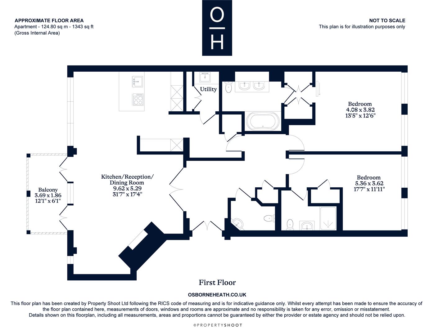 “A two double bedroom, two bathroom first floor apartment with a south facing balcony, underground parking and concierge services.”