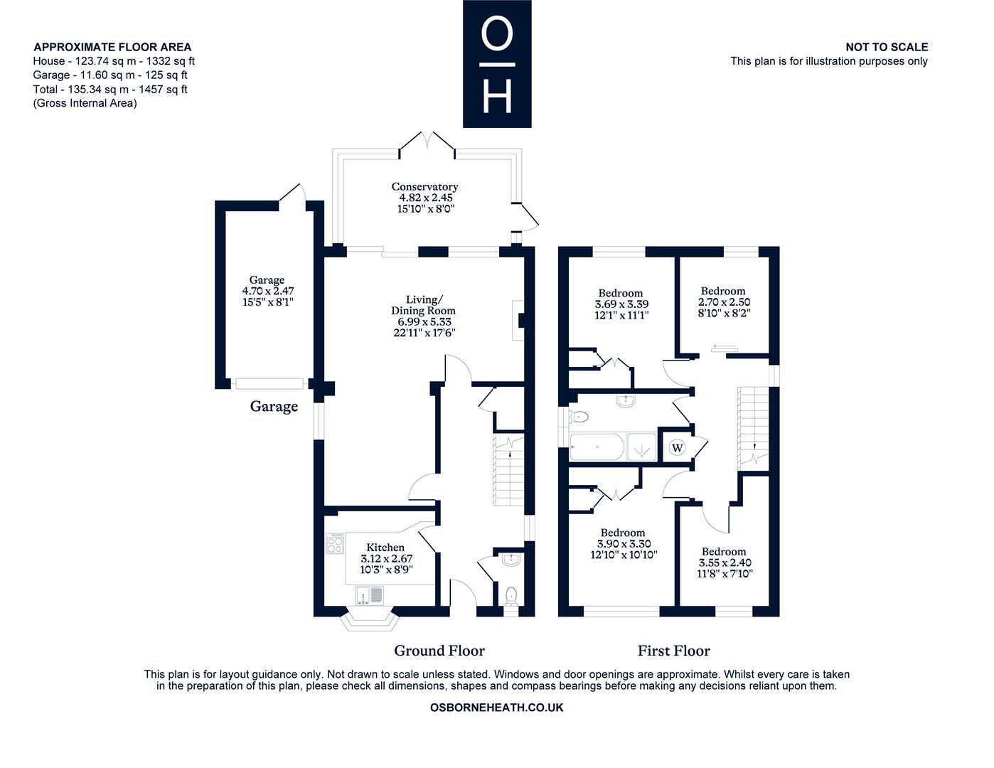 The ground floor has a L-shaped living and dining room, separate kitchen, conservatory and a downstairs WC.