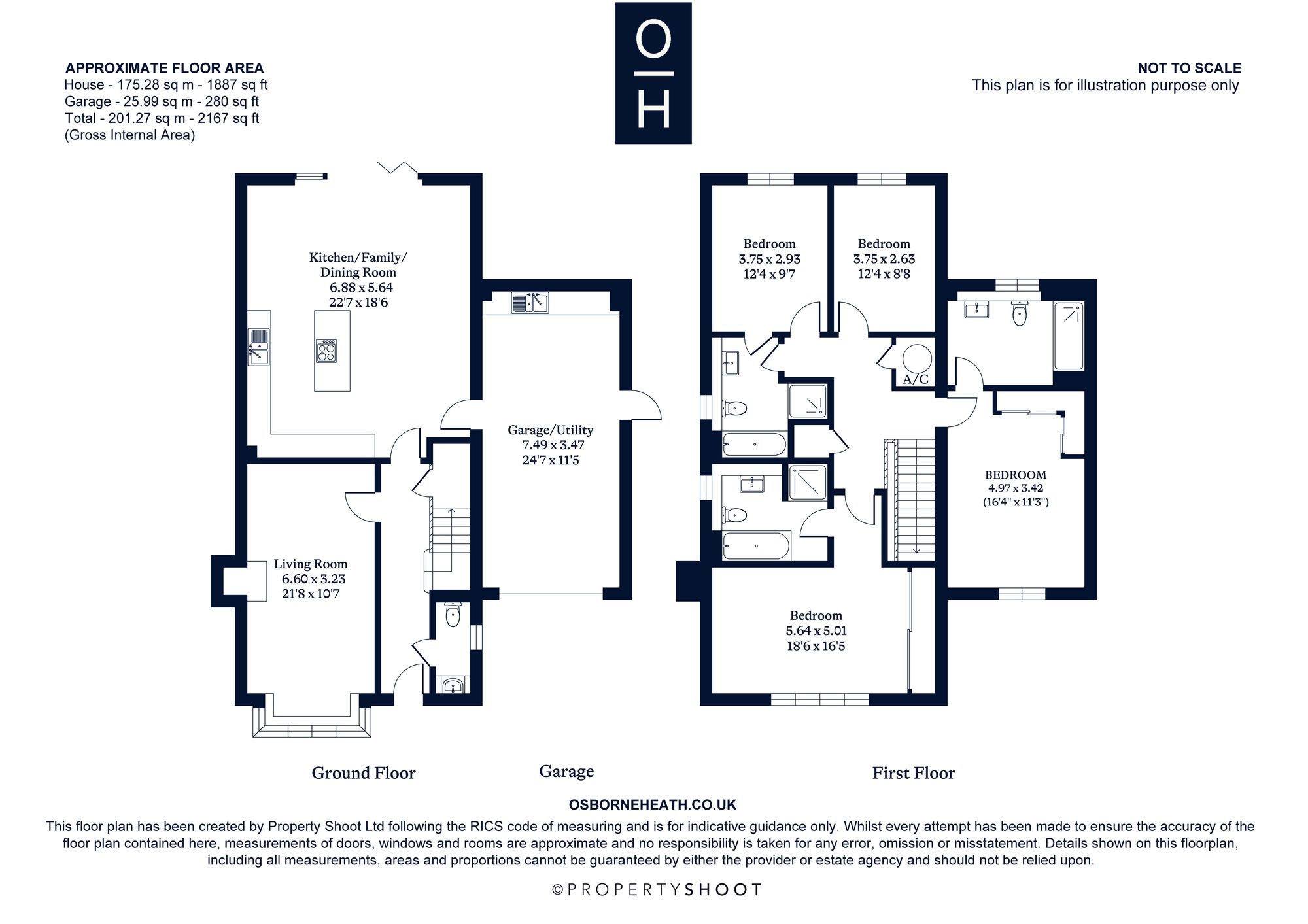 The first floor has a principal bedroom with built-in wardrobes and an en suite, guest room with built-in wardrobes and an en suite, two further bedrooms and a family bathroom.